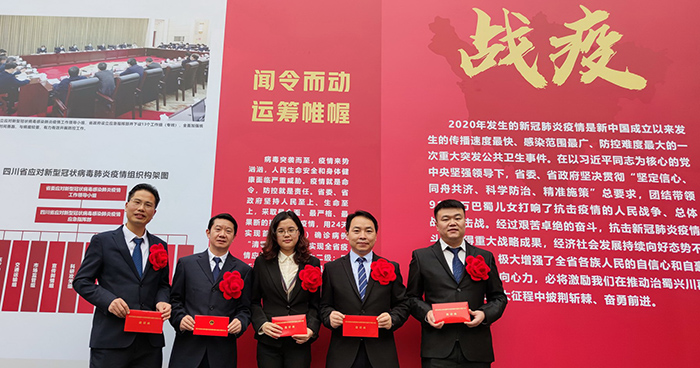 2020年11月17日,四川省抗击新冠肺炎疫情和防汛救灾表彰大会在成都锦江大礼堂隆重举行,表彰了全省抗击新冠肺炎疫情先进个人899人、先进集体300个,优秀共产党员120人、先进基层党组织100个。我厅曾吉明、许文强、阳杨、郝纯等4名同志荣获抗击新冠肺炎疫情先进个人,医药产业处党支部荣获抗击新冠肺炎疫情先进集体。其中,曾吉明同志还被表彰为优秀共产党员,医药产业处党支部还被表彰为先进基层党组织。