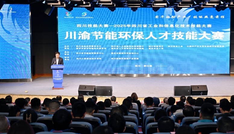 开幕式上,张海笑总工程师介绍了四川在绿色低碳发展方面取得的显著成效:2025年上半年,全省规上工业增加值增长7.3%,规上工业单位增加值能耗下降9.0%;绿色低碳产业对工业经济增长贡献率超30%;累计创建国家级和省级绿色工厂745家、绿色工业园区100个,数量位居西部首位。他指出,川渝两地携手举办节能环保人才技能大赛已五年,为两地技能人才搭建了技能比拼的擂台、人才交流的桥梁,有力推动了人才队伍建设。