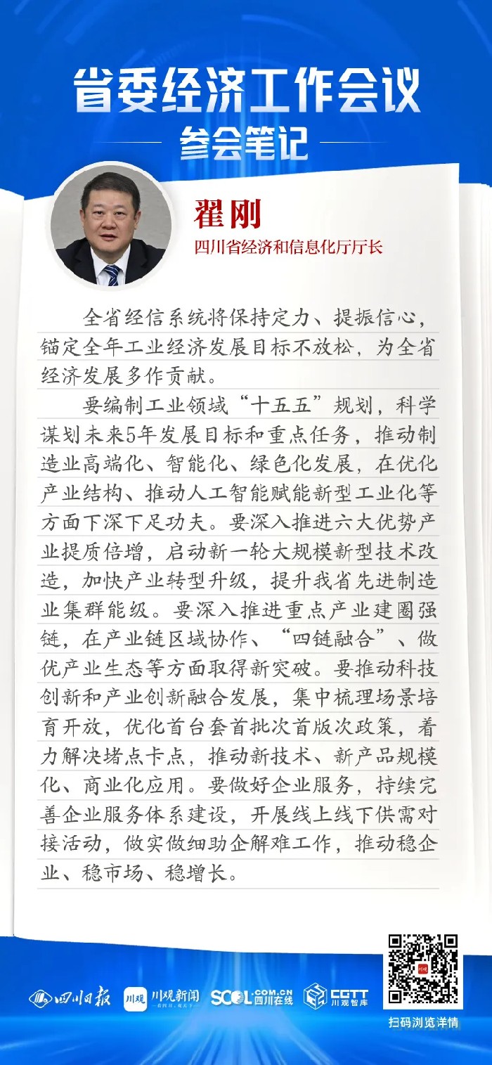 今年以来,全省工业运行总体平稳向好、量质并进,在六大优势产业提质倍增、重点产业建圈强链、制造业“智改数转”和绿色化改造、培育发展新质生产力等方面取得明显成效。省委经济工作会议系统部署明年重点任务,为我们提供了路径指引。全省经信系统将保持定力、提振信心,锚定全年工业经济发展目标不放松,为全省经济发展多作贡献。
