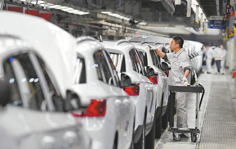 在一汽-大众成都分公司生产车间,工人在赶制订单(资料图片)。 四川日报全媒体记者 李向雨 摄