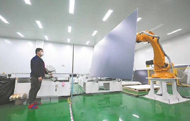 “为了实现150英寸的突破,我们提前定制了全球首套超精密加工设备、自研全新生产工艺、打造专属无尘车间,总投资超7500万元,该项目也是我们四川省重大科技专项创新成果。”吴庆富说。