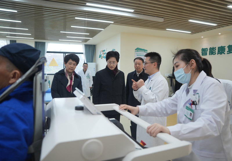 12月25日,省委副书记、省长施小琳在泸州市江阳区华阳街道龙腾社区卫生服务中心,调研智能化康复中心建设运行情况。