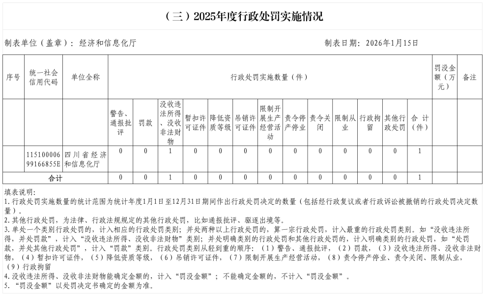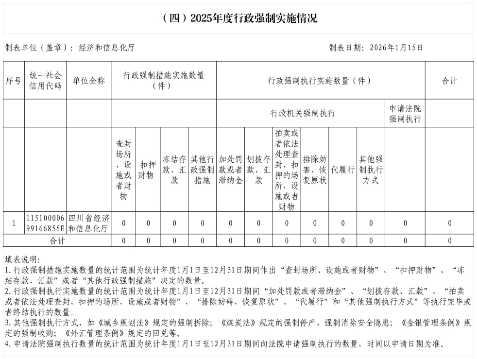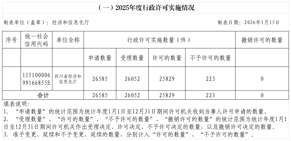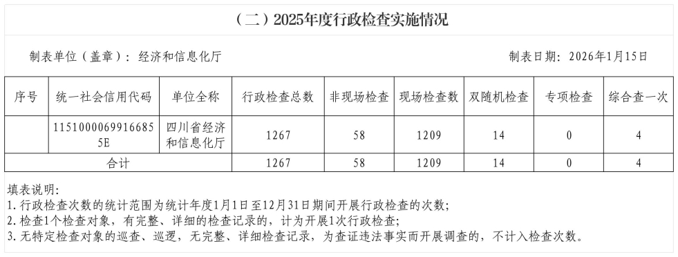 2025年度行政许可、行政检查、行政处罚、行政强制实施情况统计表