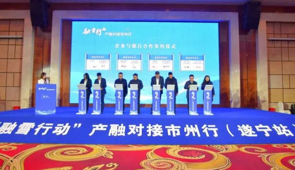 1月29日,由四川省经济和信息化厅、中国人民银行四川省分行、遂宁市人民政府主办,天府(四川)联合股权交易中心股份有限公司承办的“融雪行动”产融对接市州行活动(遂宁站)举行。活动现场,中国工商银行、中国农业银行等12家金融机构与四川高金实业集团股份有限公司、四川广义微电子股份有限公司等企业进行签约,签约金额近36亿元,其中单笔最高意向授信金额达15亿元。