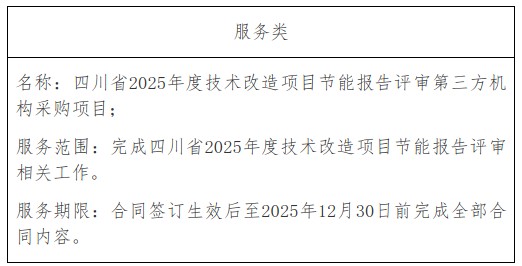 二、项目名称:四川省2025年度技术改造项目节能报告评审第三方机构采购项目